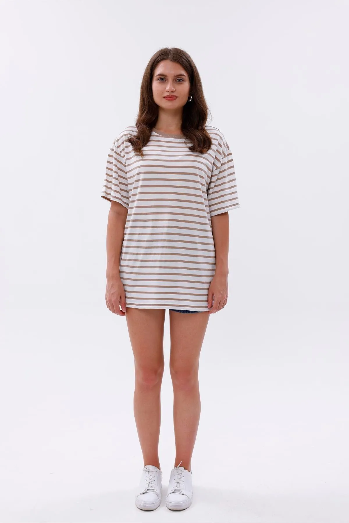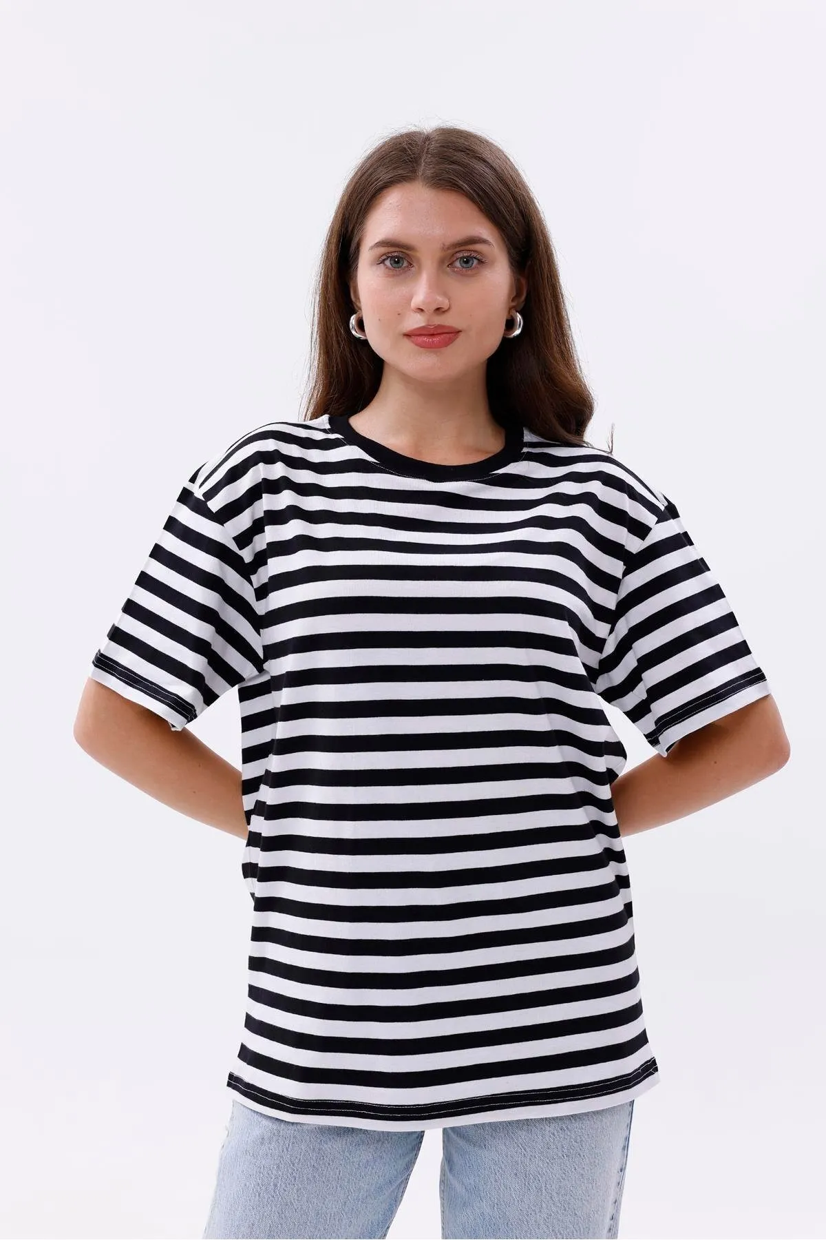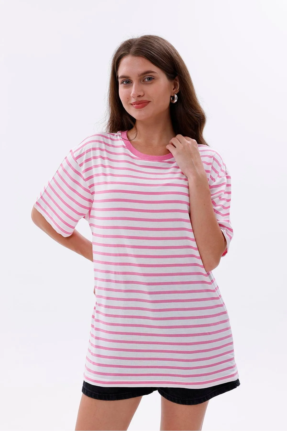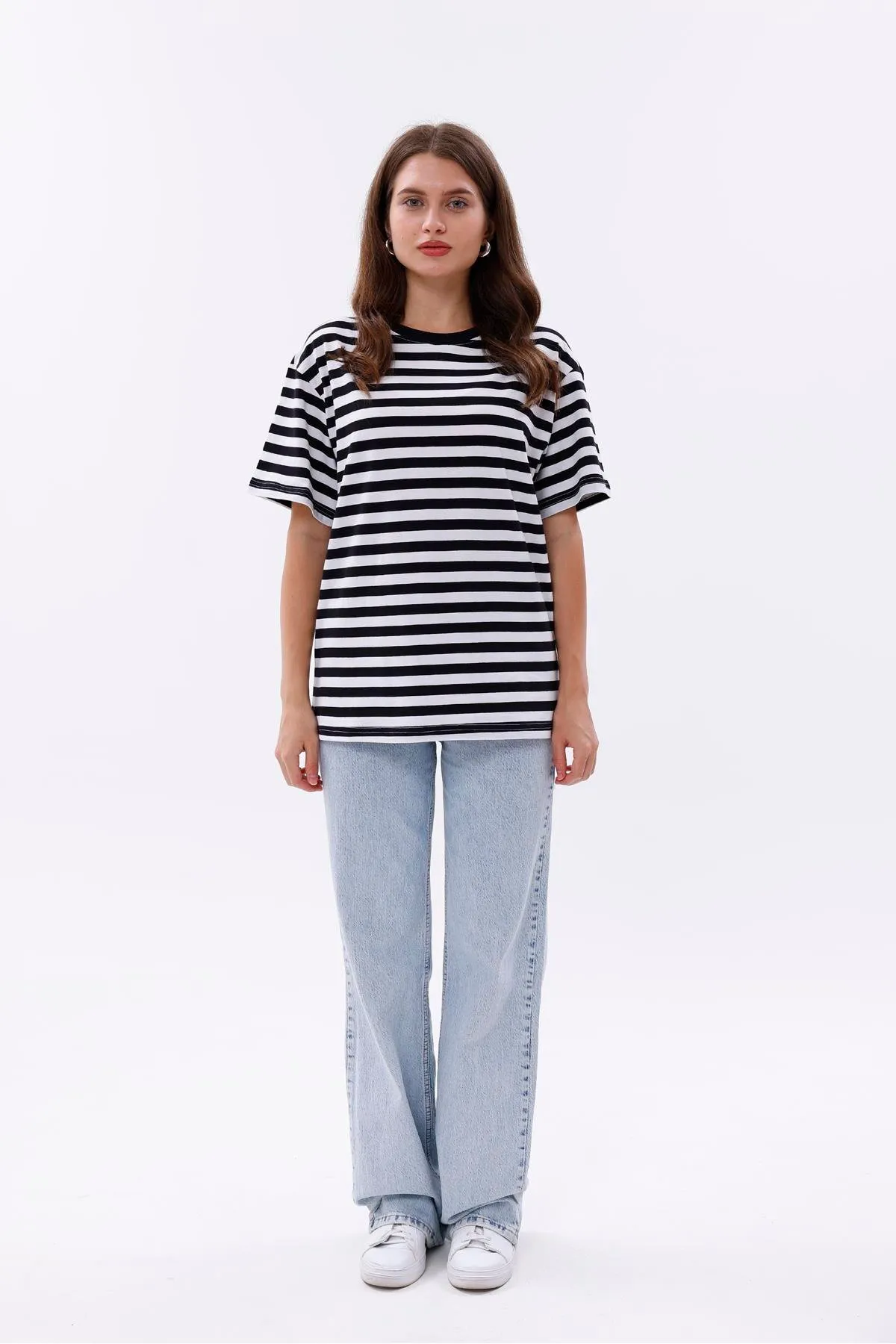 - Klasiklerin en modern yorumu: Kadın Oversize Çizgili Tişört. Zamansız çizgili deseni, trend oversize kesimi ve üstün konforuyla bu tişört, gardırobunuzun en joker parçalarından biri olmaya aday. Hem rahatlığı hem de stil sahibi bir duruşu bir arada arayan kadınlar için mükemmel bir seçim!
