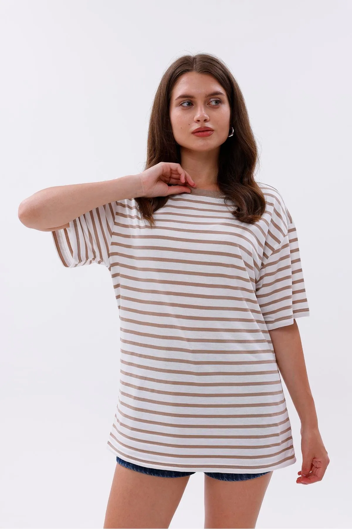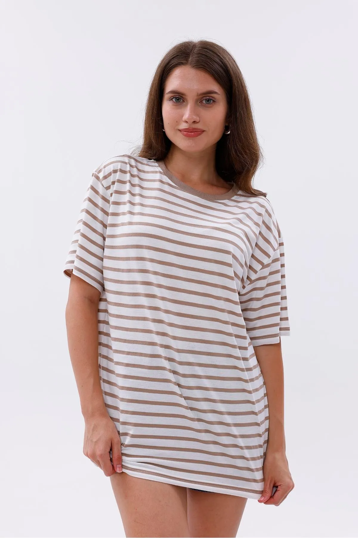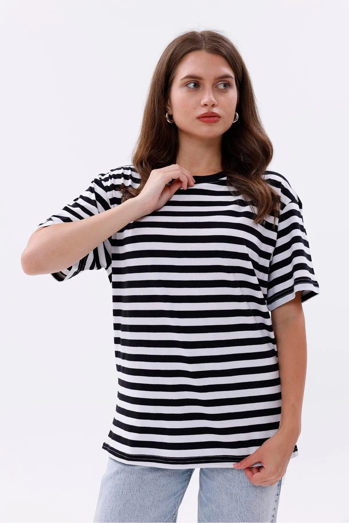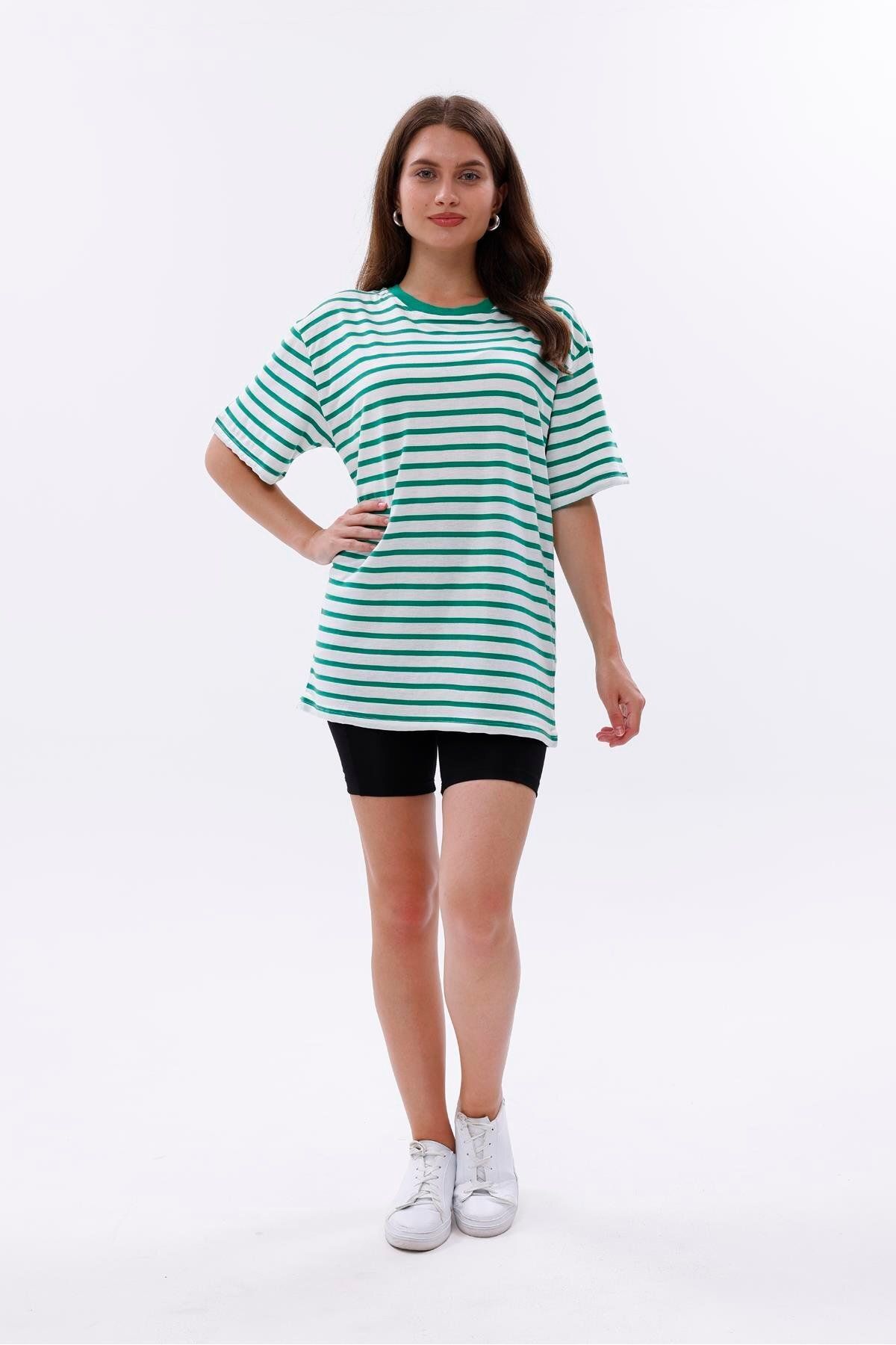 - Klasiklerin en modern yorumu: Kadın Oversize Çizgili Tişört. Zamansız çizgili deseni, trend oversize kesimi ve üstün konforuyla bu tişört, gardırobunuzun en joker parçalarından biri olmaya aday. Hem rahatlığı hem de stil sahibi bir duruşu bir arada arayan kadınlar için mükemmel bir seçim!
