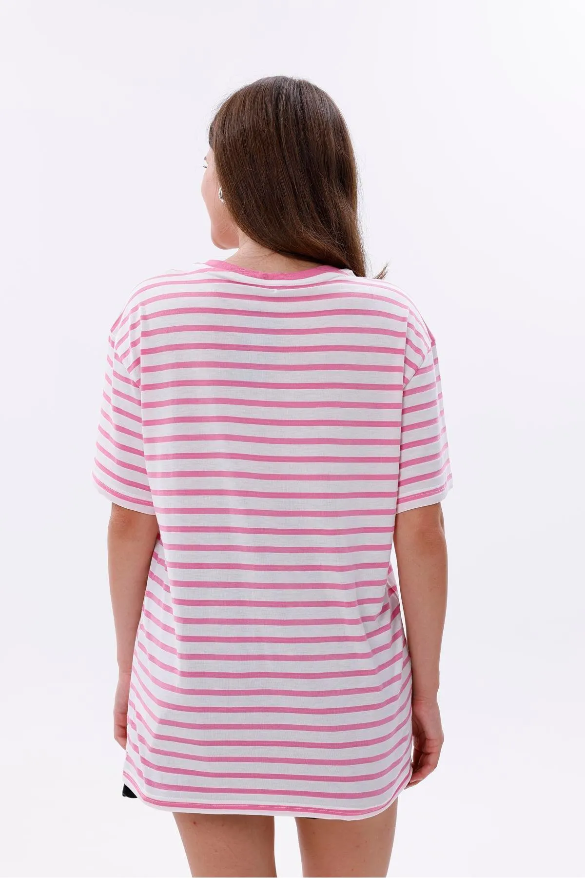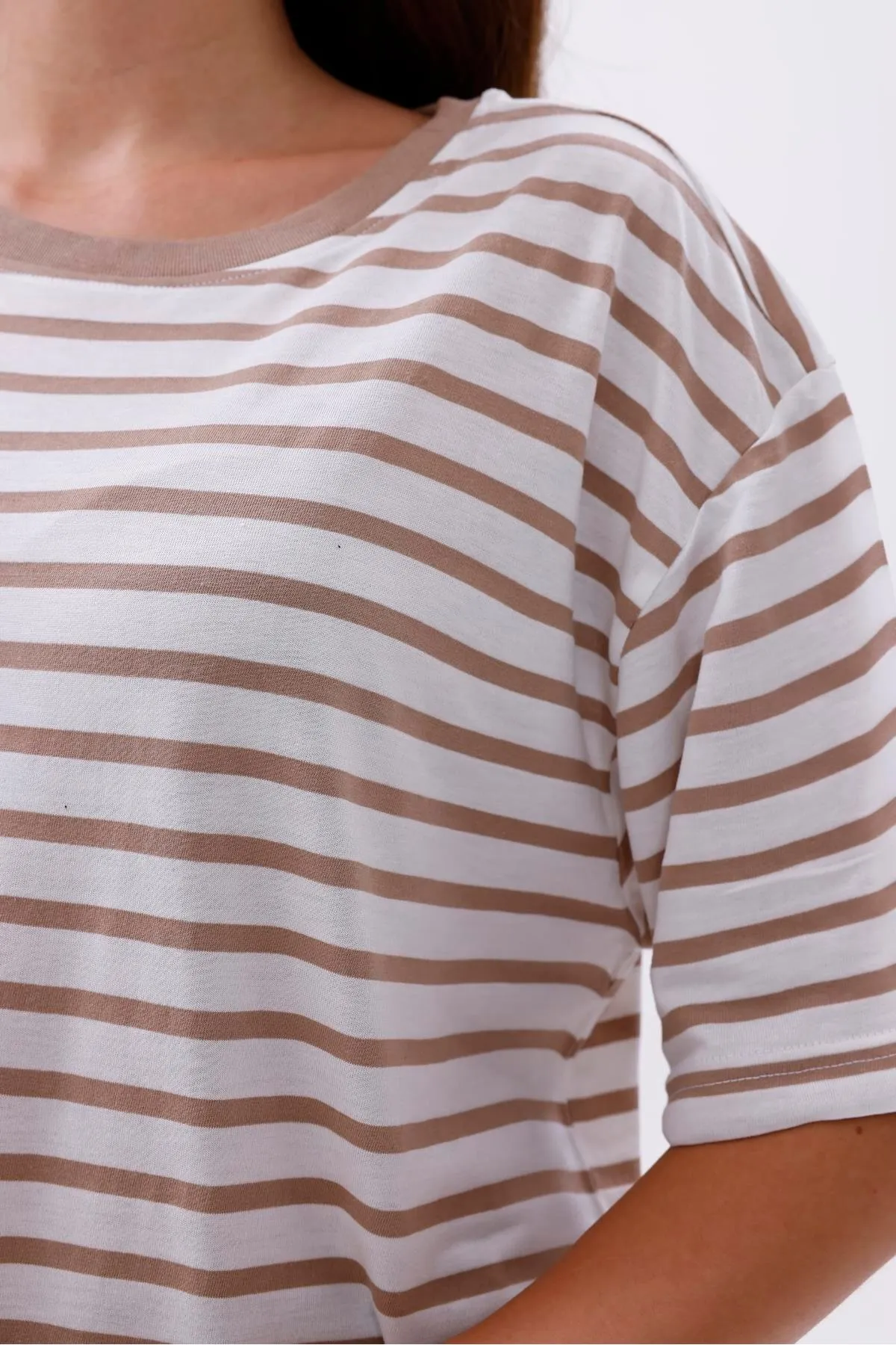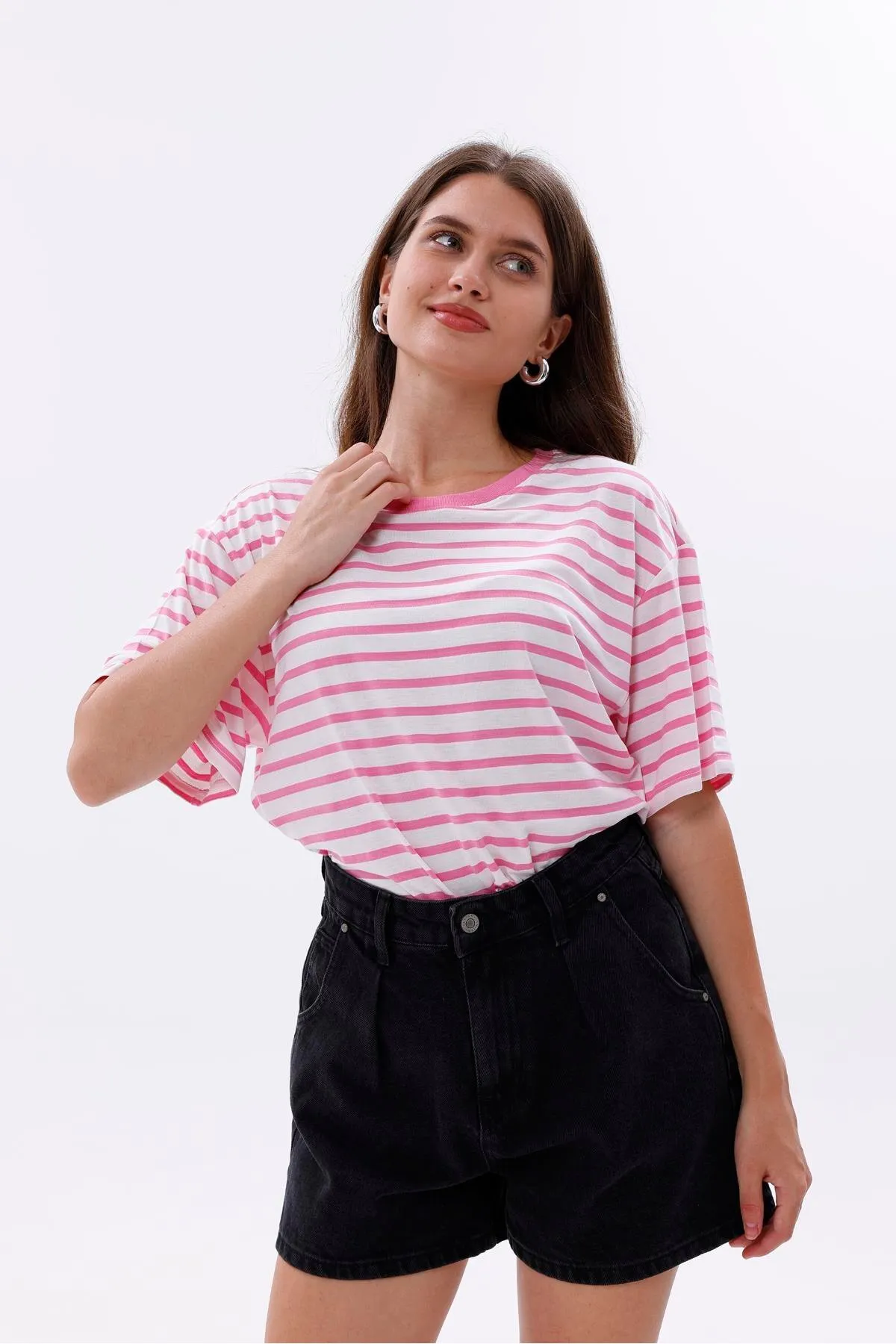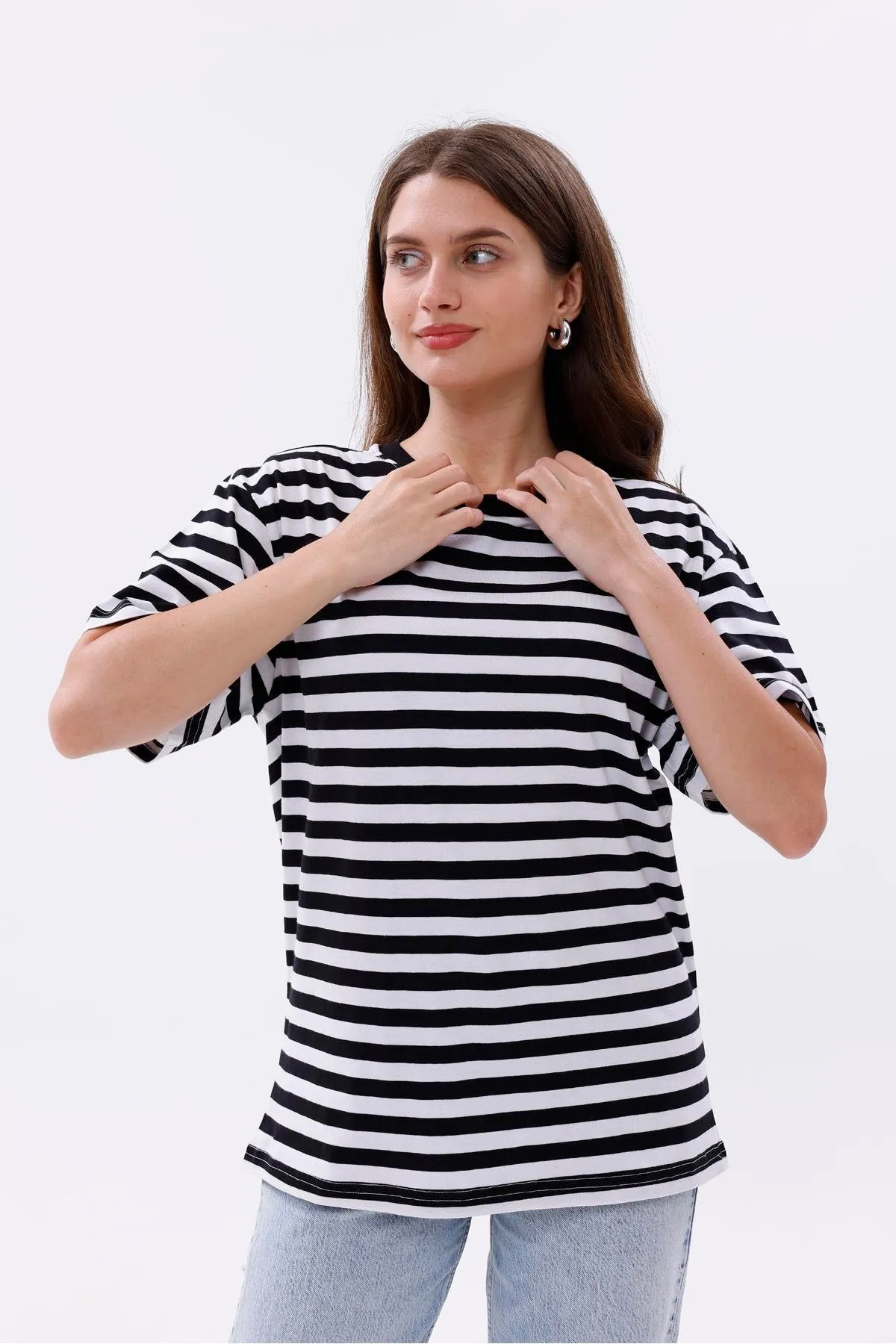 - Klasiklerin en modern yorumu: Kadın Oversize Çizgili Tişört. Zamansız çizgili deseni, trend oversize kesimi ve üstün konforuyla bu tişört, gardırobunuzun en joker parçalarından biri olmaya aday. Hem rahatlığı hem de stil sahibi bir duruşu bir arada arayan kadınlar için mükemmel bir seçim!