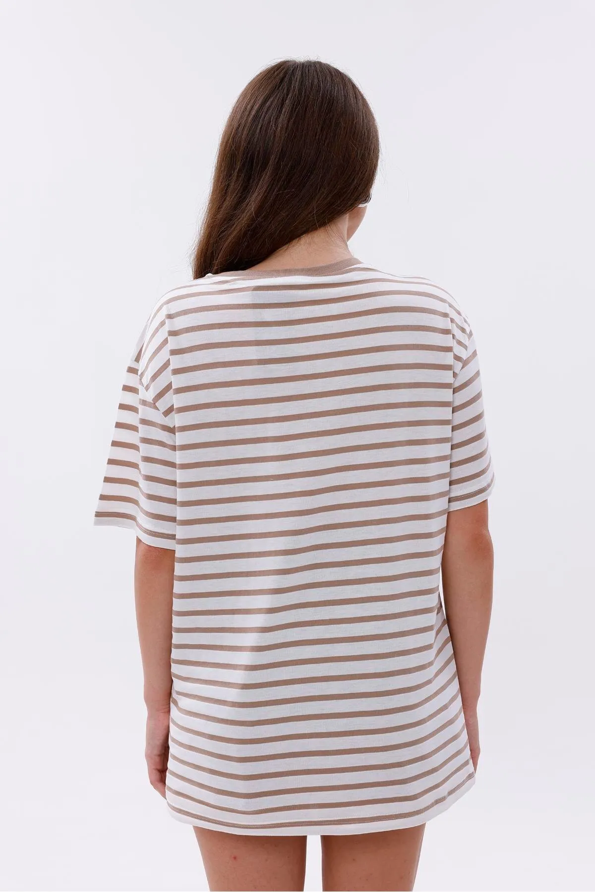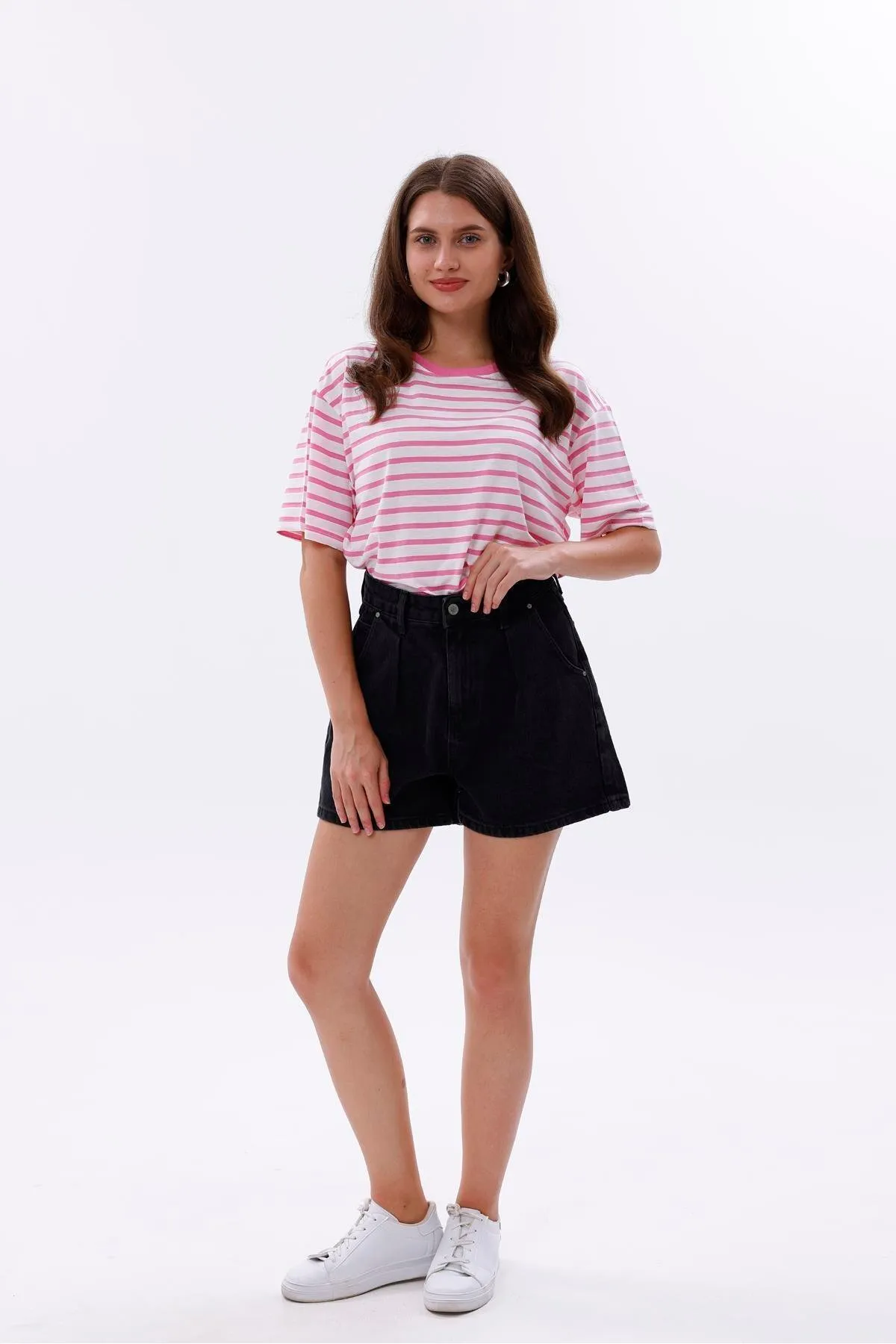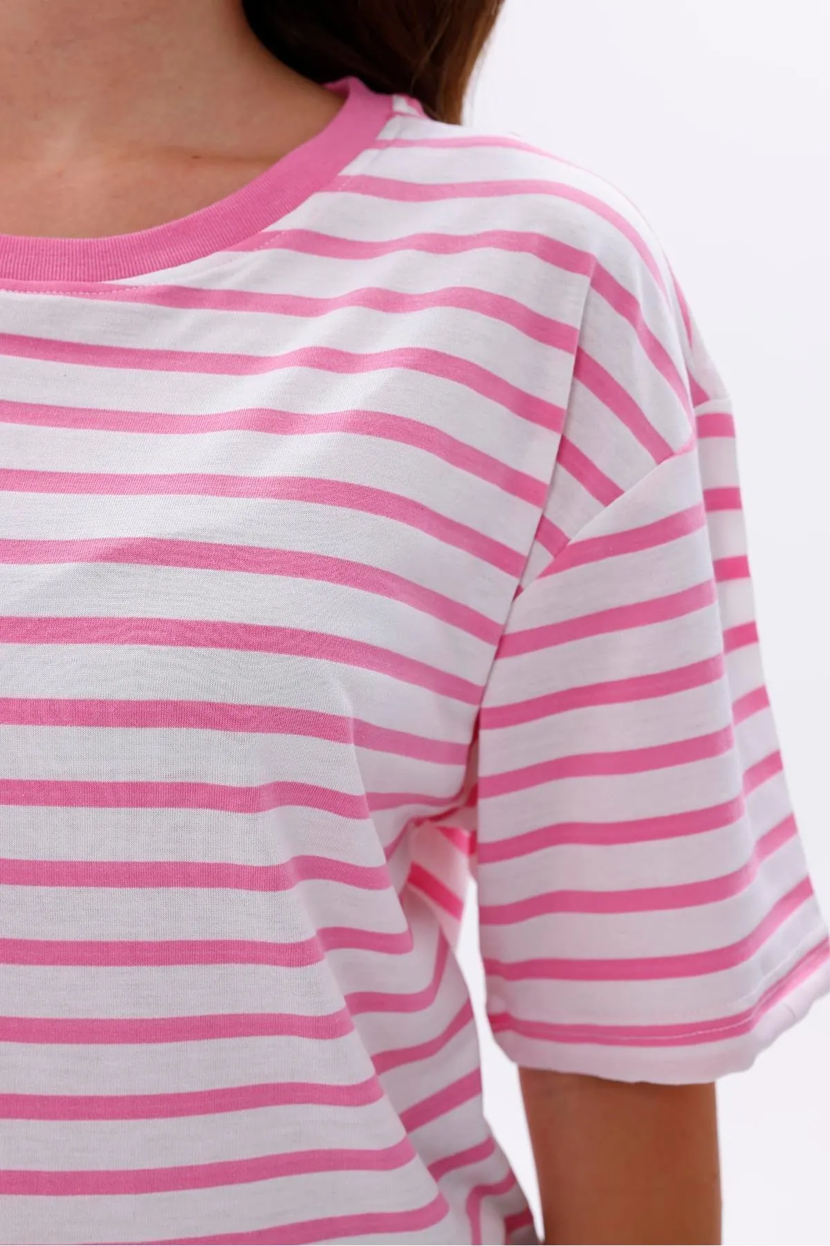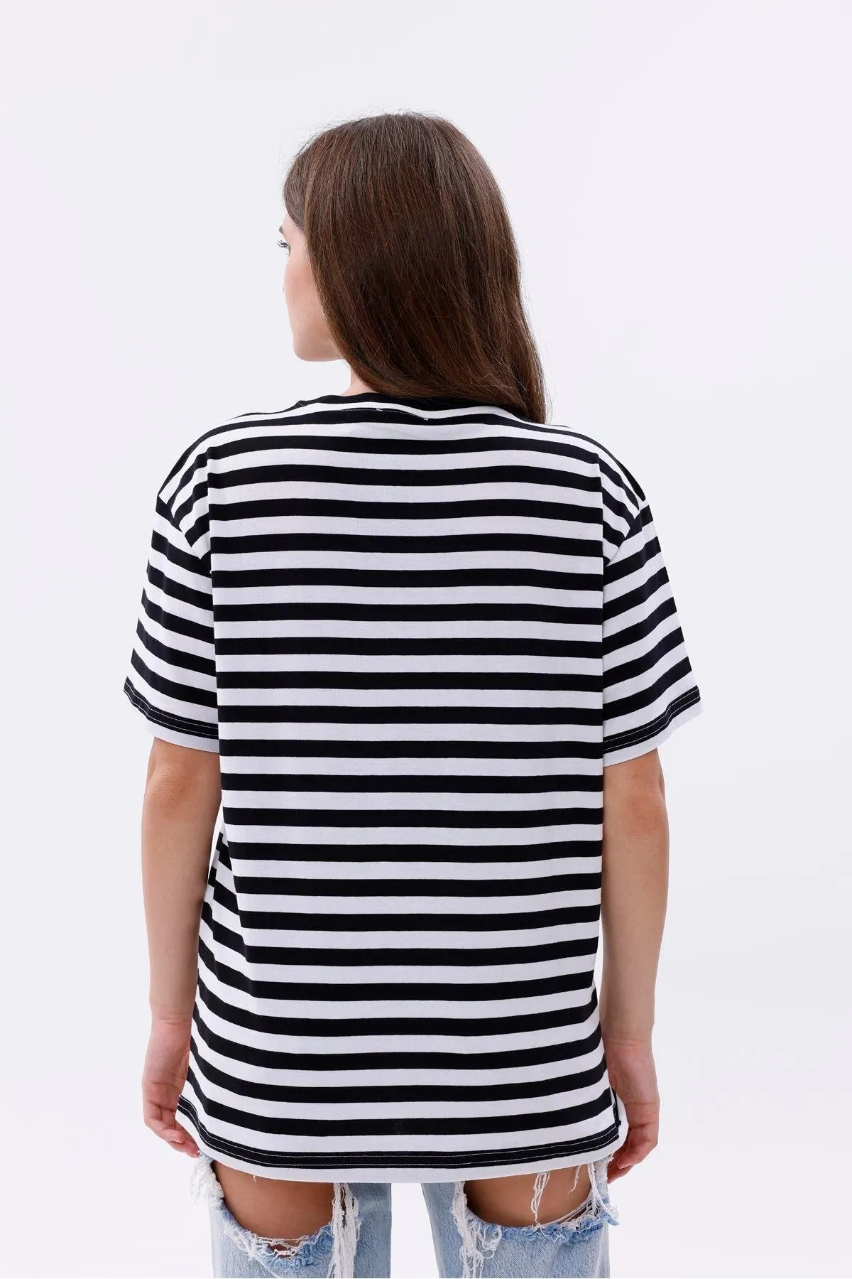 - Klasiklerin en modern yorumu: Kadın Oversize Çizgili Tişört. Zamansız çizgili deseni, trend oversize kesimi ve üstün konforuyla bu tişört, gardırobunuzun en joker parçalarından biri olmaya aday. Hem rahatlığı hem de stil sahibi bir duruşu bir arada arayan kadınlar için mükemmel bir seçim!
